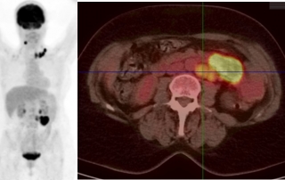 Décision : R-CHOP x 6 cycles sous réserve d’obtention d’une réponse complète après 4 cycles. Le patient étant traité en dehors d’un essai thérapeutique, un traitement guidé par la TEP précoce après 2 cycles n’est pas envisagé