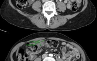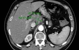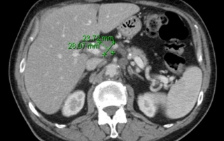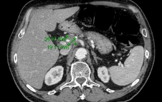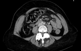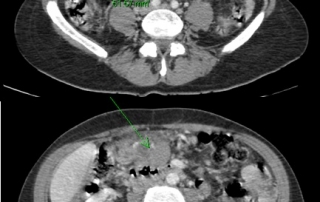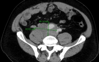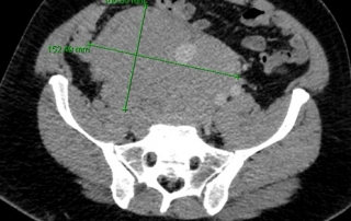 - Scanner TAP lésion péritonéale résiduelle taille 33 x 22 mm
