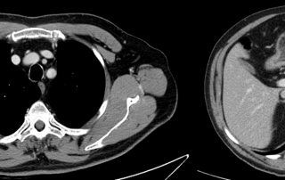 Scanner comparé au scanner avant traitement, la cible axillaire droite taille 18 x 9 mm