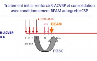 Traitement initial renforcé Rituximab-ACVBP et consolidation avec conditionnement BEAM autogreffe CSH